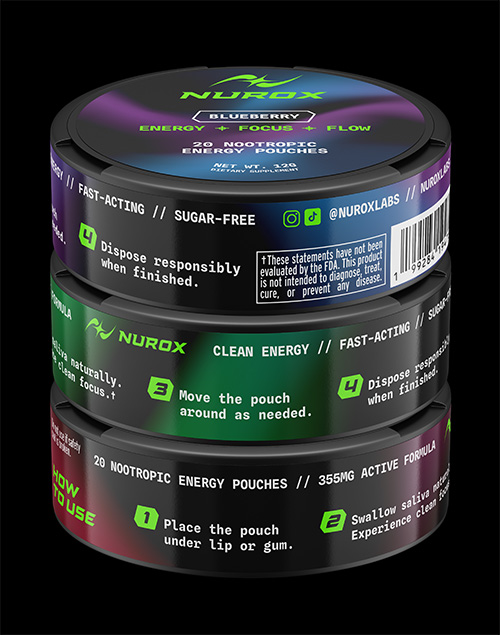 Nurox is a focus and energy supplement in a buccal pouch format, designed for the fastest and cleanest absorption possible. It delivers clean and fast mental stimulation without the use of nicotine or caffeine.